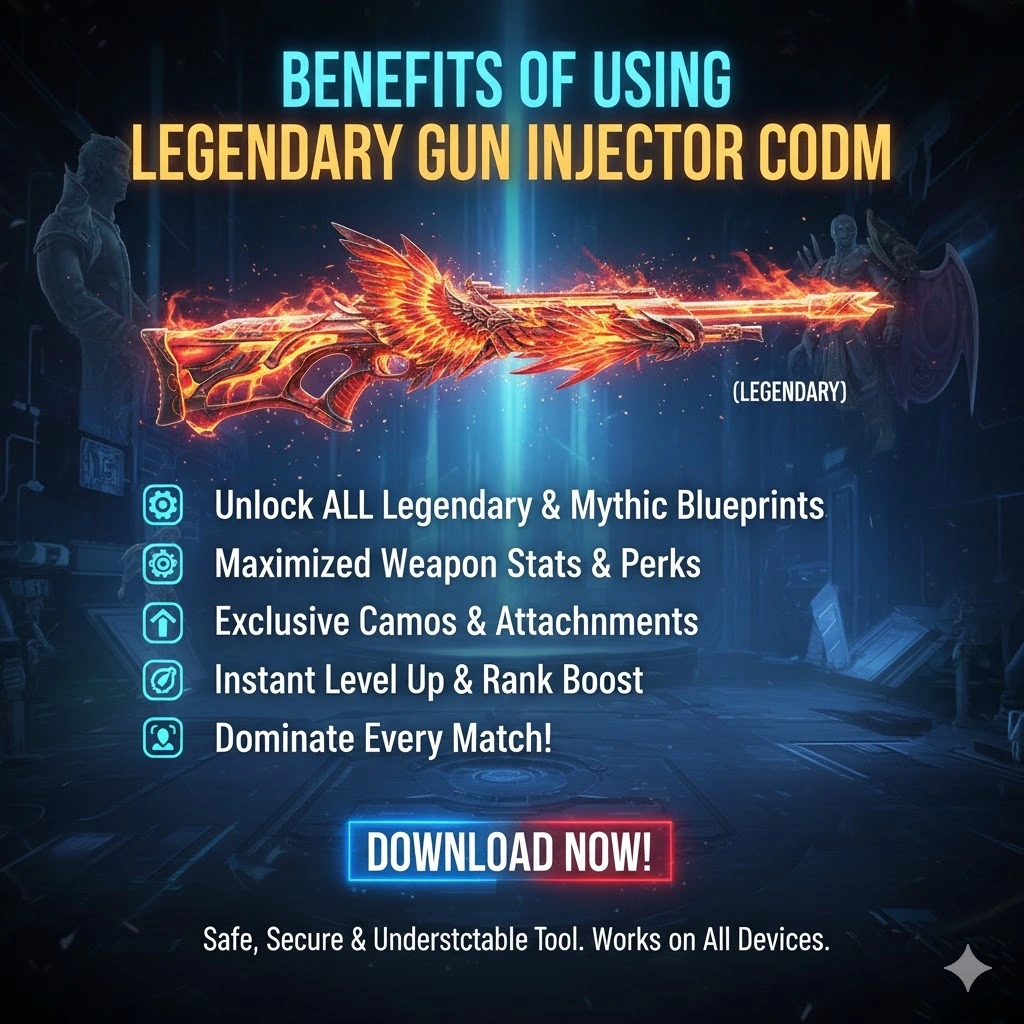 The Legendary Gun Injector CODM 2026 offers instant free unlocks for mythic and legendary gun skins with glowing effects, custom tracers, and kill cams. It supports no-recoil mods, speed boosts, and attachment customizations on popular weapons like AK-47, M13, and upcoming 2026 SMGs. Compatible with non-root Android devices, latest seasons, and low-lag configs for smooth performance and safe cosmetic gameplay.